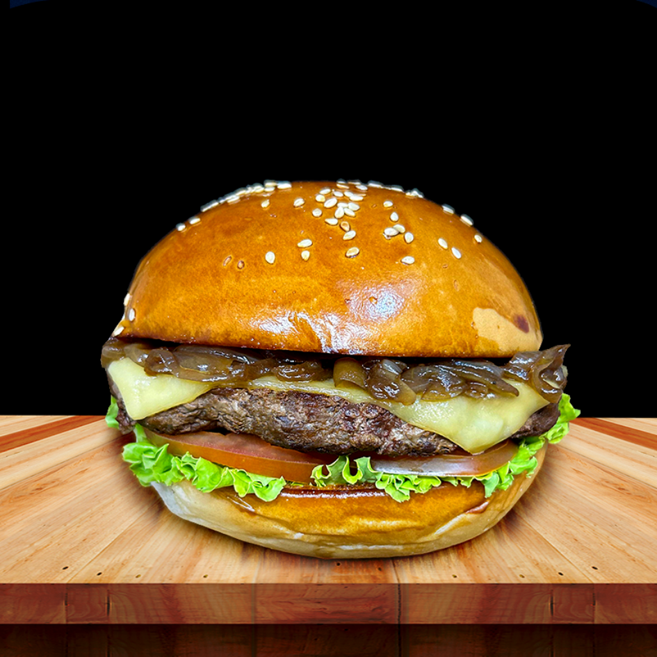 09 - Francês ClássicoPão francês ▪️ Hambúrguer bovino 100g ▪️ Molho cheddar ▪️ Cebola caramelizada ▪️ Alface, tomate e molho labareda.R$ 14,00